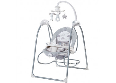 Altalena Sogni D'oro con Schienale regolabile per consetire la massima comodità del neonato e cinture di sicurezza per garantirea la massima sicurezza